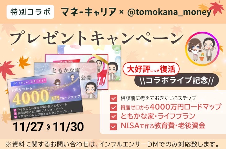 ④ともかながインスタのDMでロードマップ、ともかな家ライフプラン、NISAで作る教育費老後資金特典を送ります!