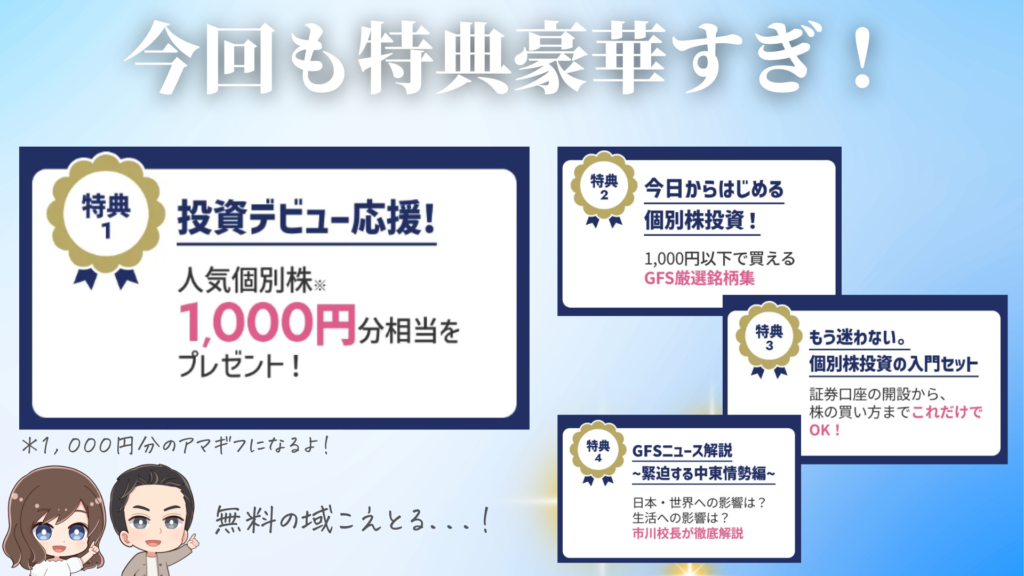 今回もGFS無料講座(旧バフェッサ)からの特典は盛りだくさん!