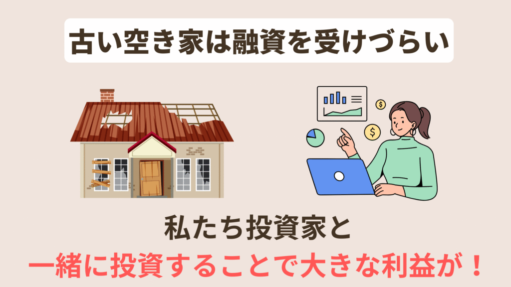 結構古め空き家って、銀行からの融資がつきにくいことが多いから!
