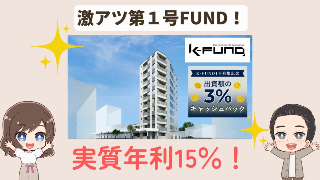 想定年利12%のファンドなんだけど、1号ファンドってことで3%のキャッシュバックが付くよ!