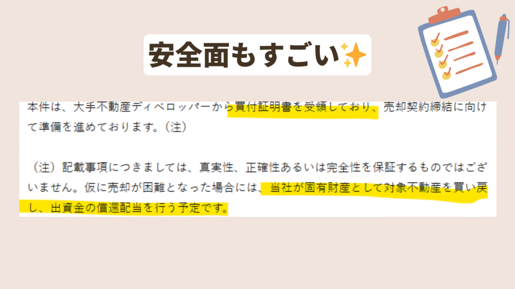 出口(売却先)が事前に決まっている案件も多いから、安心感があるよね👌