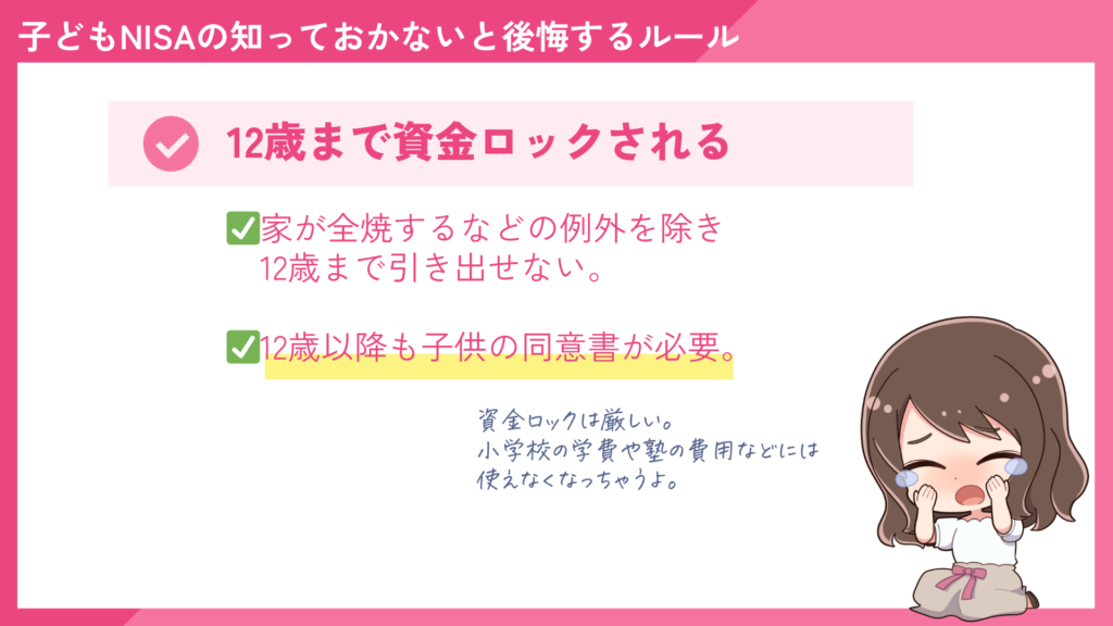 家が全焼するなど例外を除き、12歳までは引き出せない💦