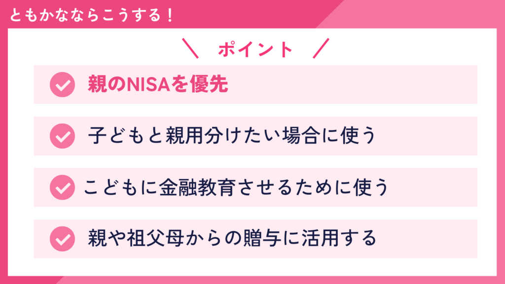 この記事ではこどもNISAをどのように活用していくのがBESTなのかを