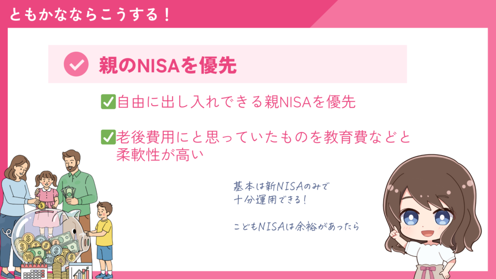 まずは親のNISAを優先して埋めることが重要!その後にこどもNISAの枠を使うか検討してもいいかも👀