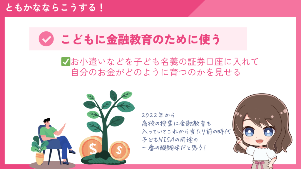 人それぞれ状況は違うし、こどもNISAの活用法もさまざまだよね。