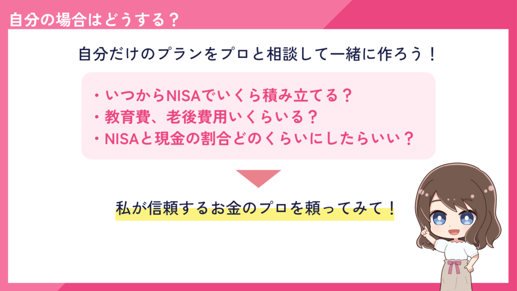 だったら将来を見据えてプロに相談してみるのも手段の一つ!