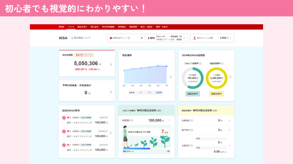 NISA資産や、推移、今どのくらい使ってる?などが一目でわかるようになってるよ☺️