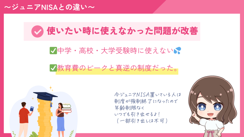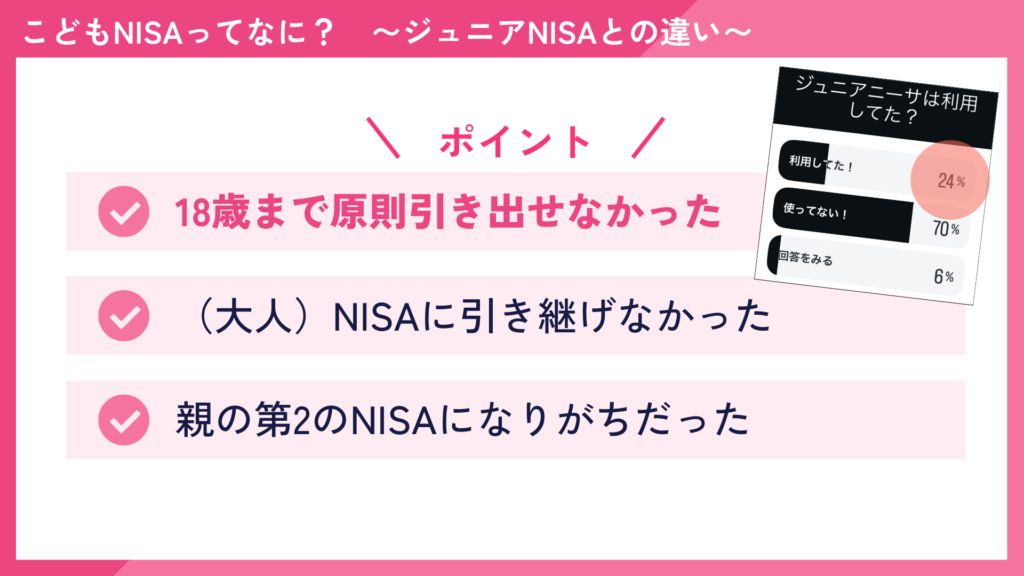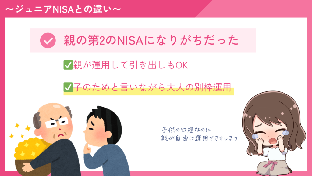 2023年に終了したジュニアNISAと2027年から始めるこどもNISAは制度が全く違うよ!