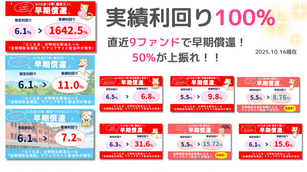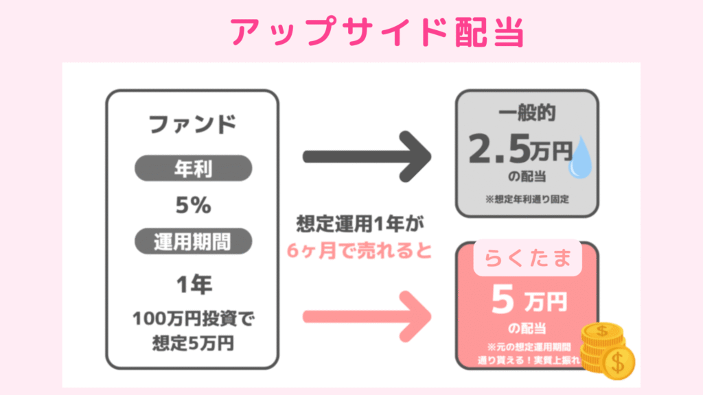 らくたまは、アップサイド配当で高年利が狙える上に、優待や即日配当など、他にはない魅力が盛りだくさん!