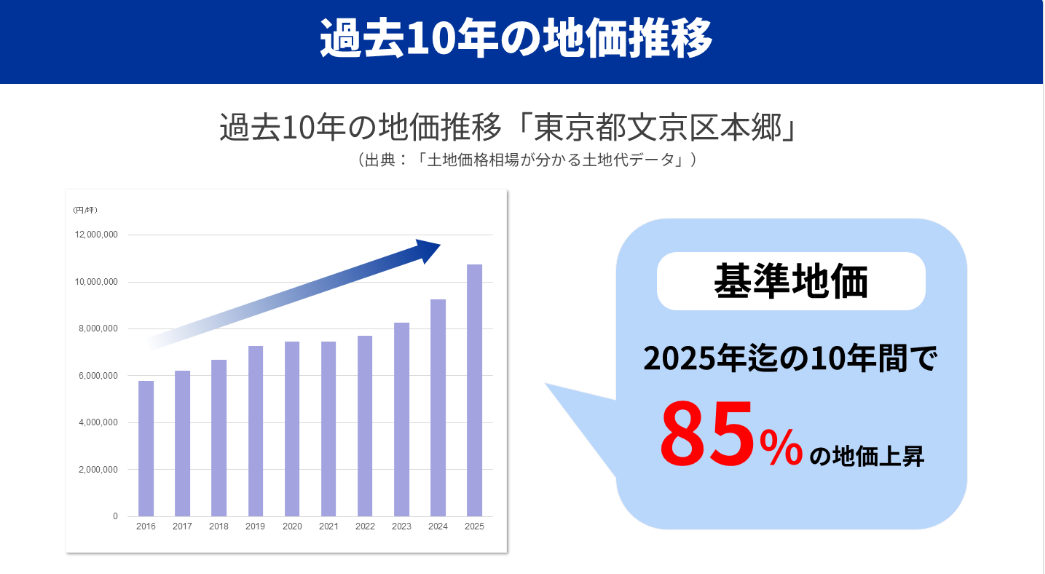 回対象物件のエリアは、過去10年で85%の地価上昇地域!