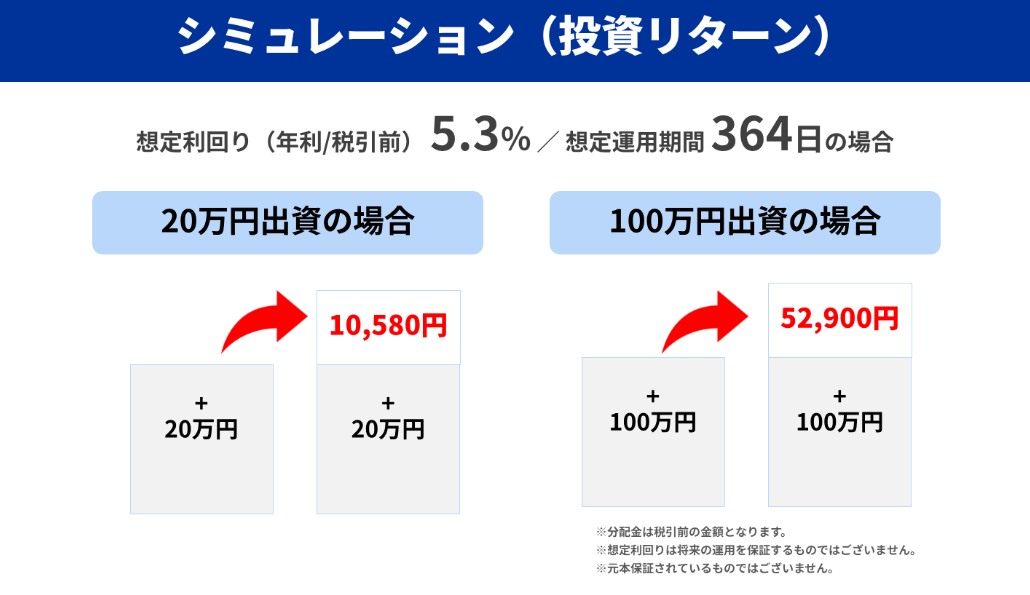 20万投資で+10,580円、100万円の場合+52,900円程度!