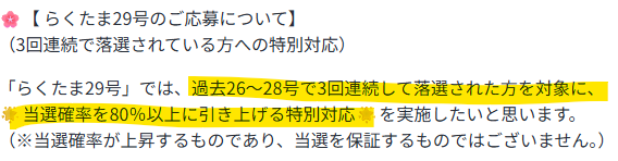 しかも今回は落選続きの人にウレシイ当選確率UP措置が!