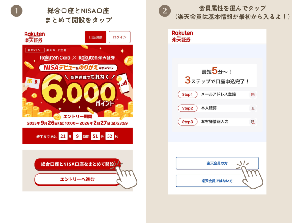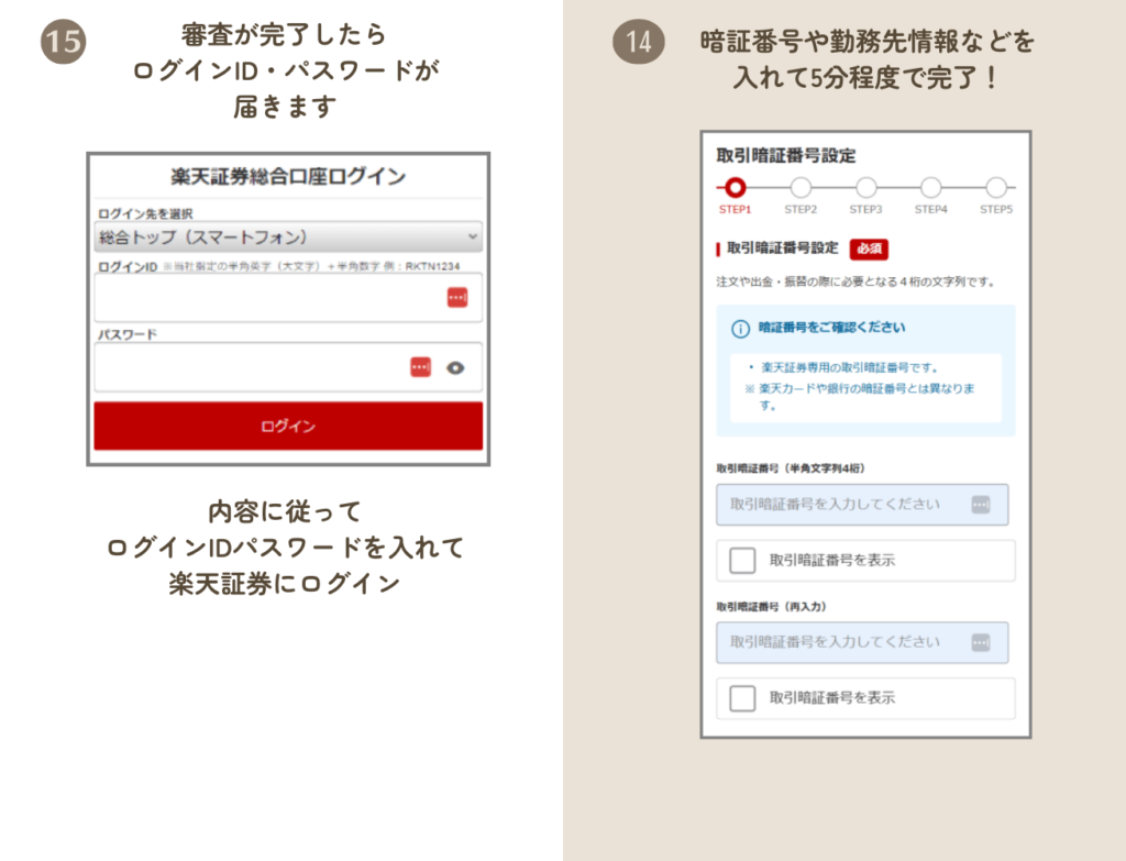 楽天証券のサイトで手続きをする