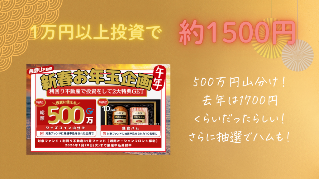 さらに1万円以上投資で、500万円山分けで1500〜1700円分くらいに👀
