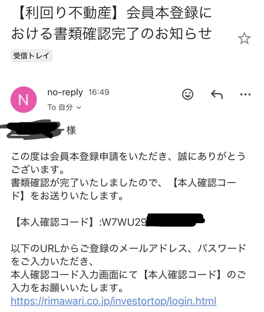 会員登録が完了すると1営業日くらいでメールが届くよ!