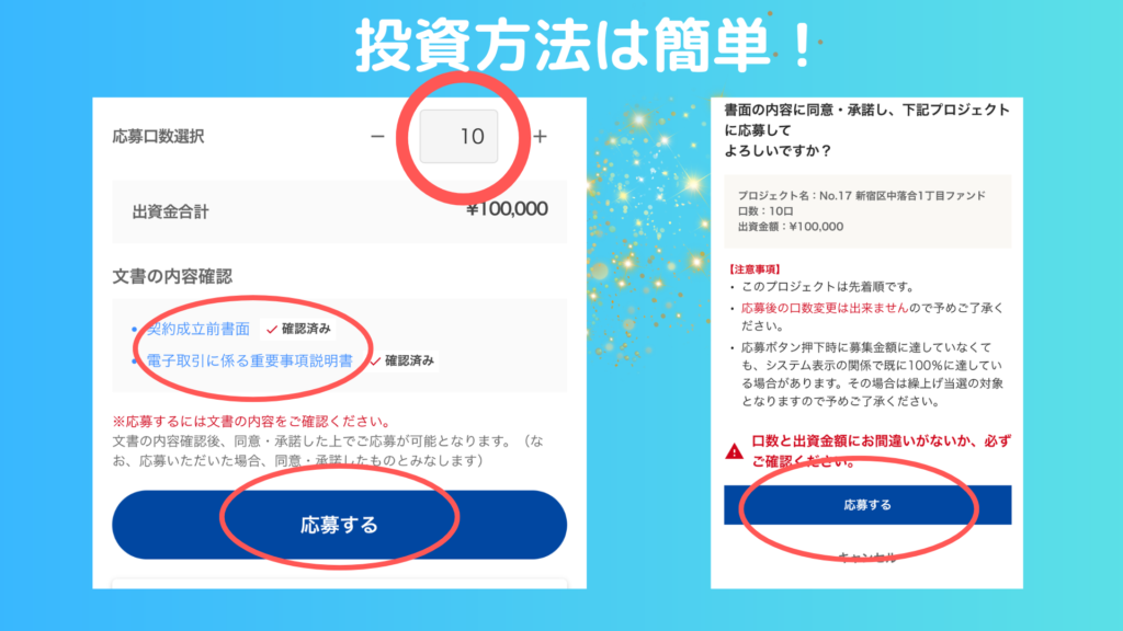 ①応募口数を入れる