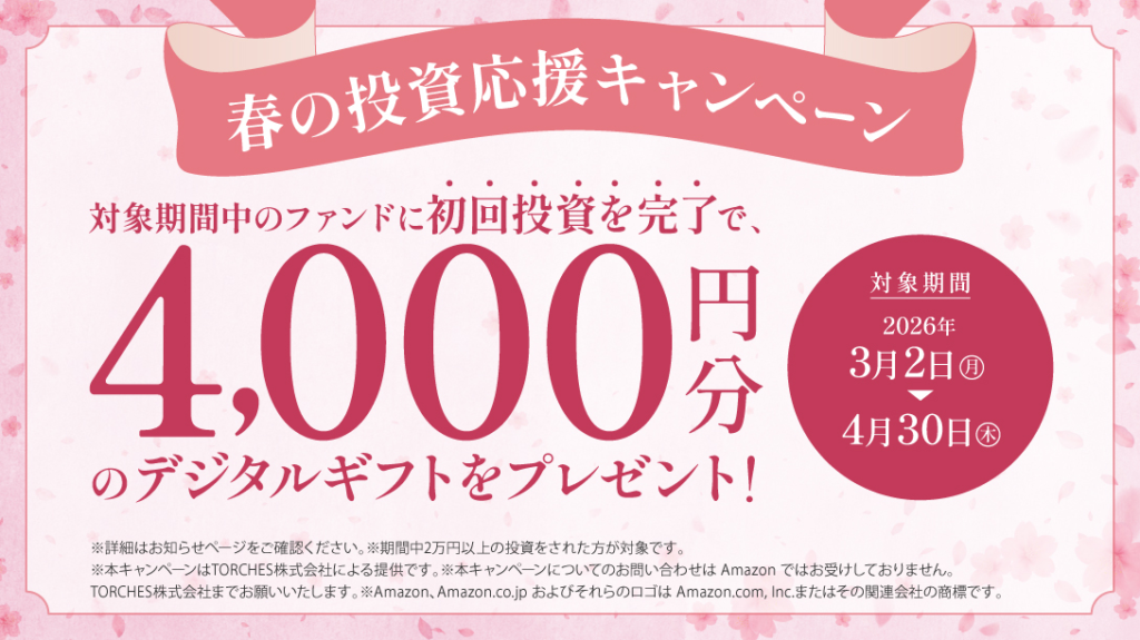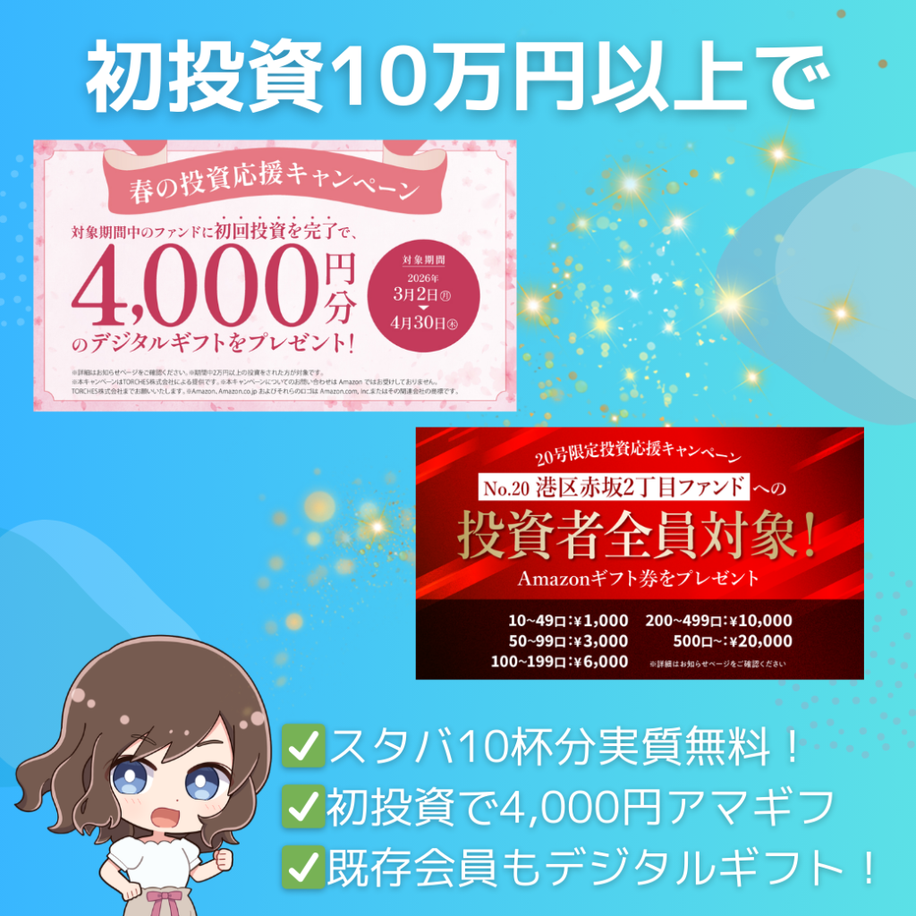 このファンドに10万円以上投資で下記キャンペーンが適応になるよ!